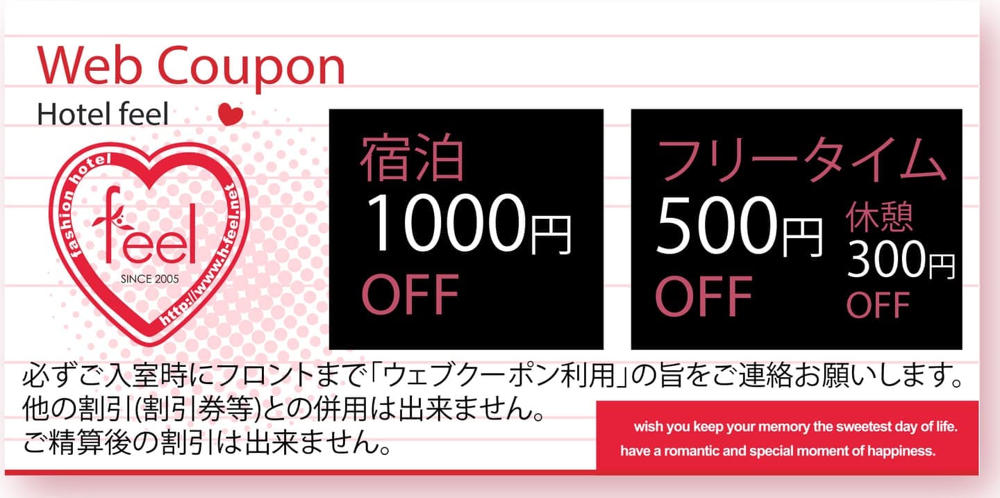ご利用の際はフロントまで「クーポン利用」とご連絡お願い致します。